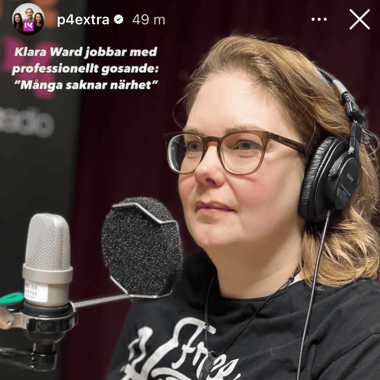 I början av 2025 hamnade jag i en riktig media-cirkus, alla var nyfikna på det här med professionellt gosande. Här hittar du all min medverkan och några omnämnanden i TV, radio, poddar, tidningar.